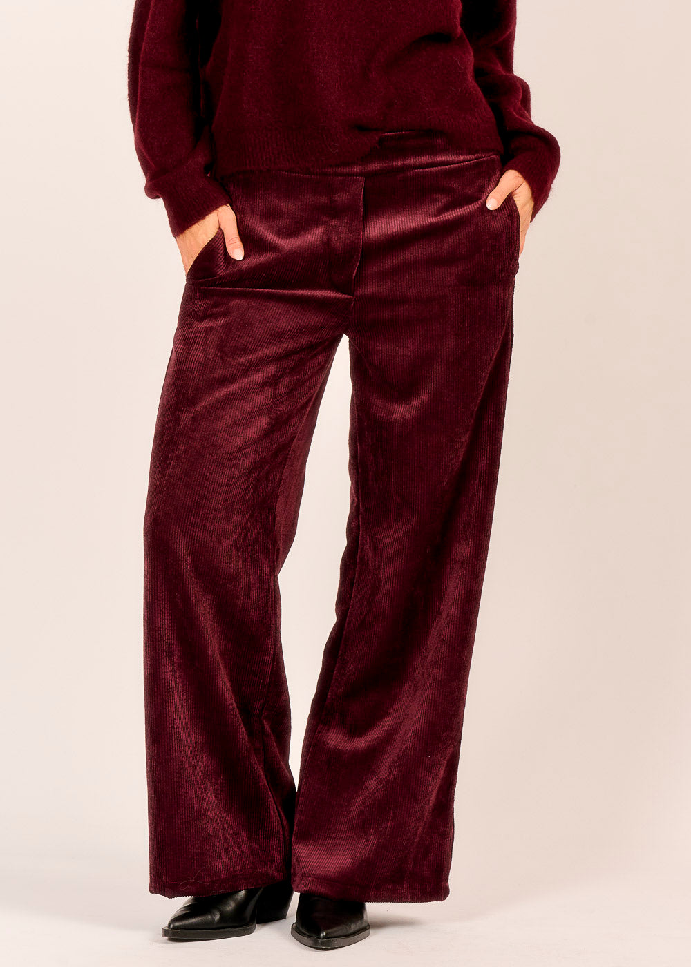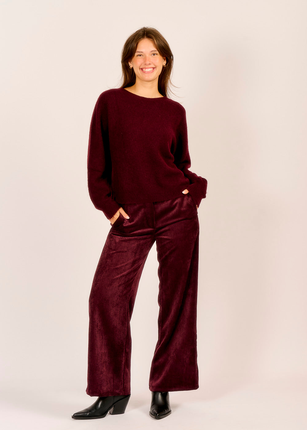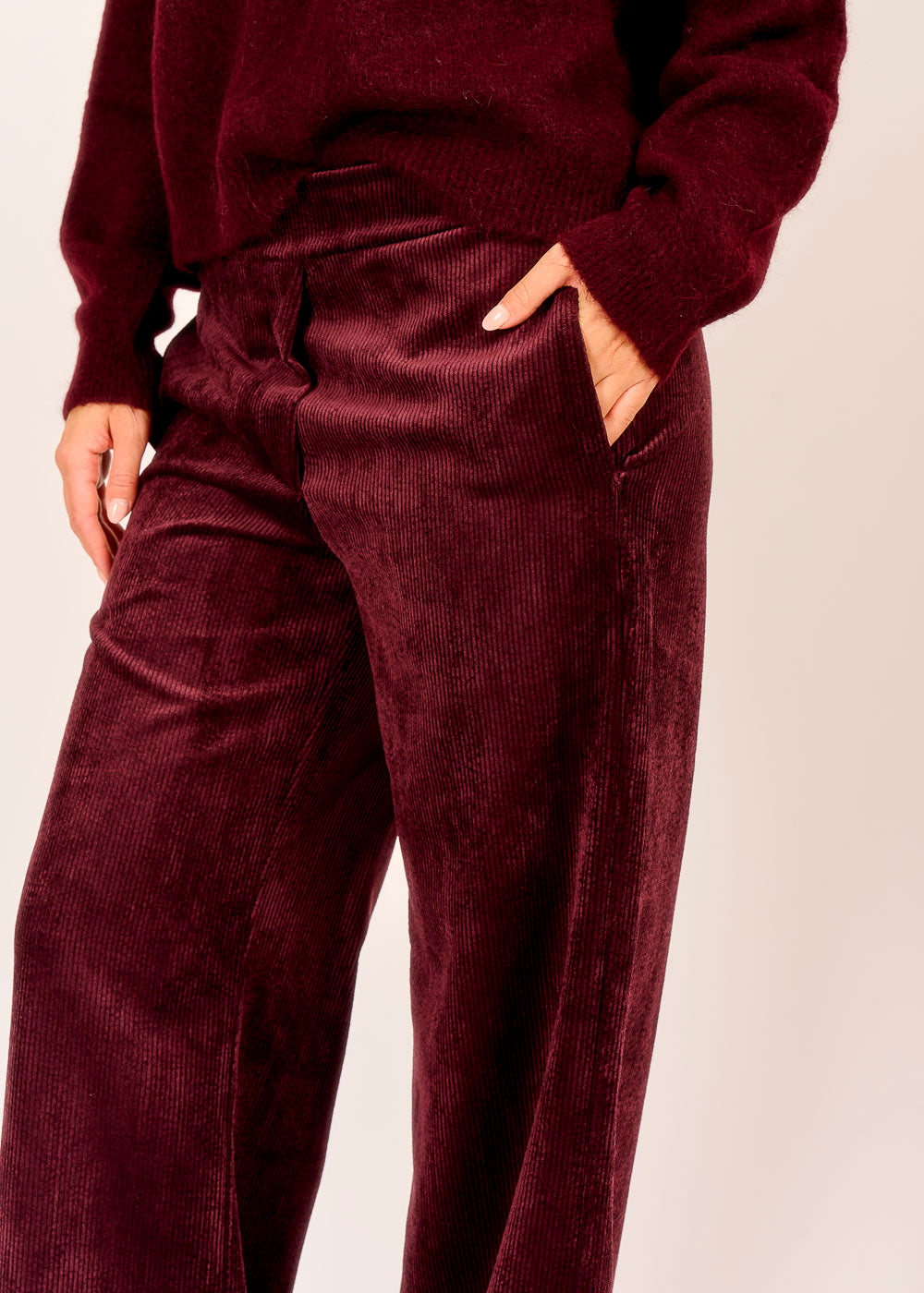Komfort trifft Eleganz: Diese Cordhose in edlem Vino ist wie ein warmer Begleiter für deinen Alltag. Der weiche Stoff und der entspannte Schnitt sorgen für ein angenehmes Tragegefühl, das den ganzen Tag anhält. Die seitlichen Taschen setzen praktische Akzente.