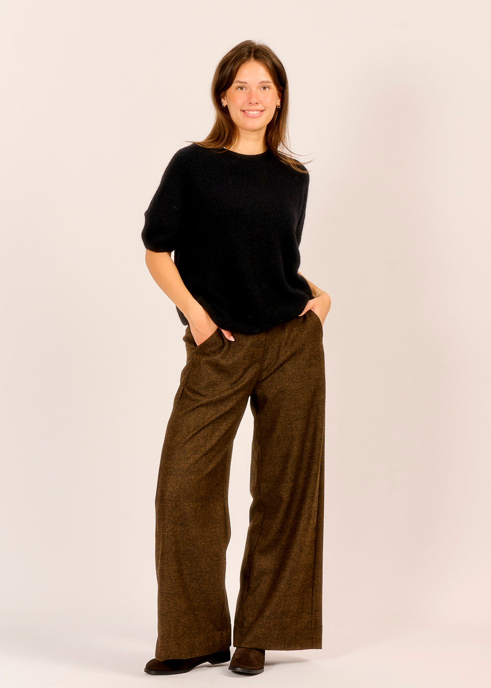 Diese lässig geschnittene Hose vereint Stil und Tragekomfort auf besondere Weise und verleiht jedem Outfit eine elegante, unkomplizierte Note. Der weiche Fall des Stoffes und der entspannte Schnitt machen sie zum perfekten Begleiter für Alltag, Büro und besondere Anlässe.