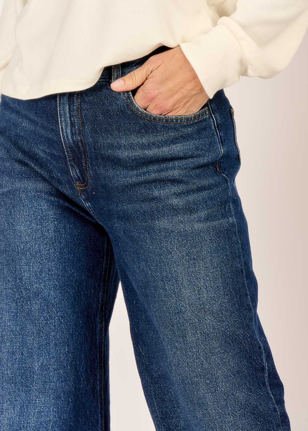 Diese dunkelblaue Marlene Jeans zaubert nicht nur eine tolle Silhouette, sondern ist auch wunderbar vielseitig. Mit dem richtigen Schuh verwandelt sie sich im Handumdrehen vom lässigen Klassiker zum eleganten Hingucker.