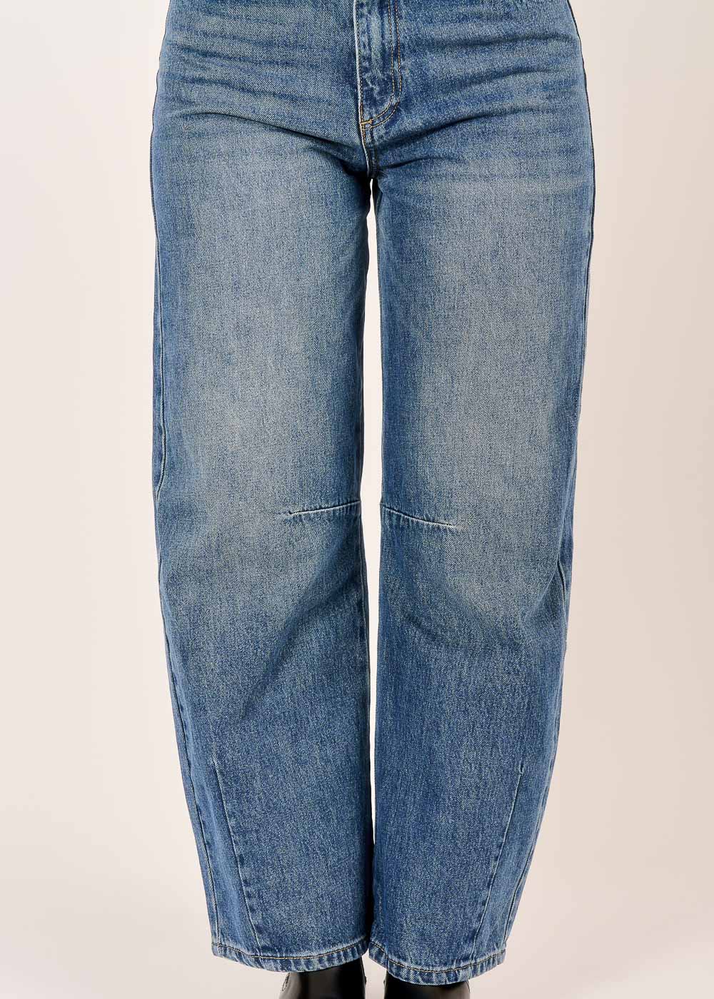 Die lässige Ballon Jeans sorgt nicht nur eine moderne Silhouette, sondern schenkt dir Bewegungsfreiheit. Der klassische Blauton lässt sich mühelos zu allen deinen Lieblingsstücken kombinieren.