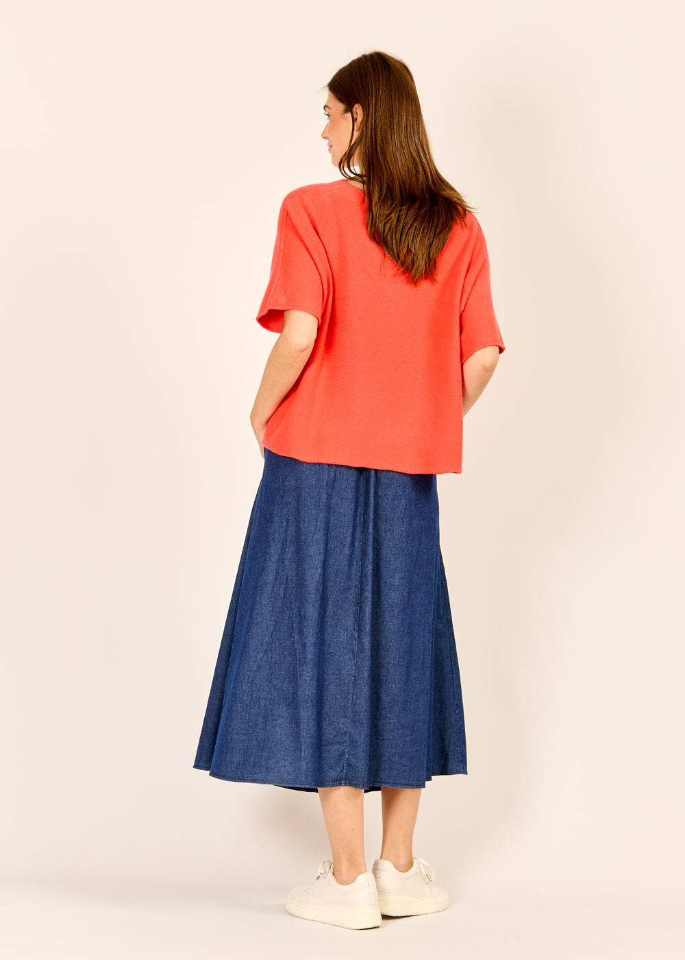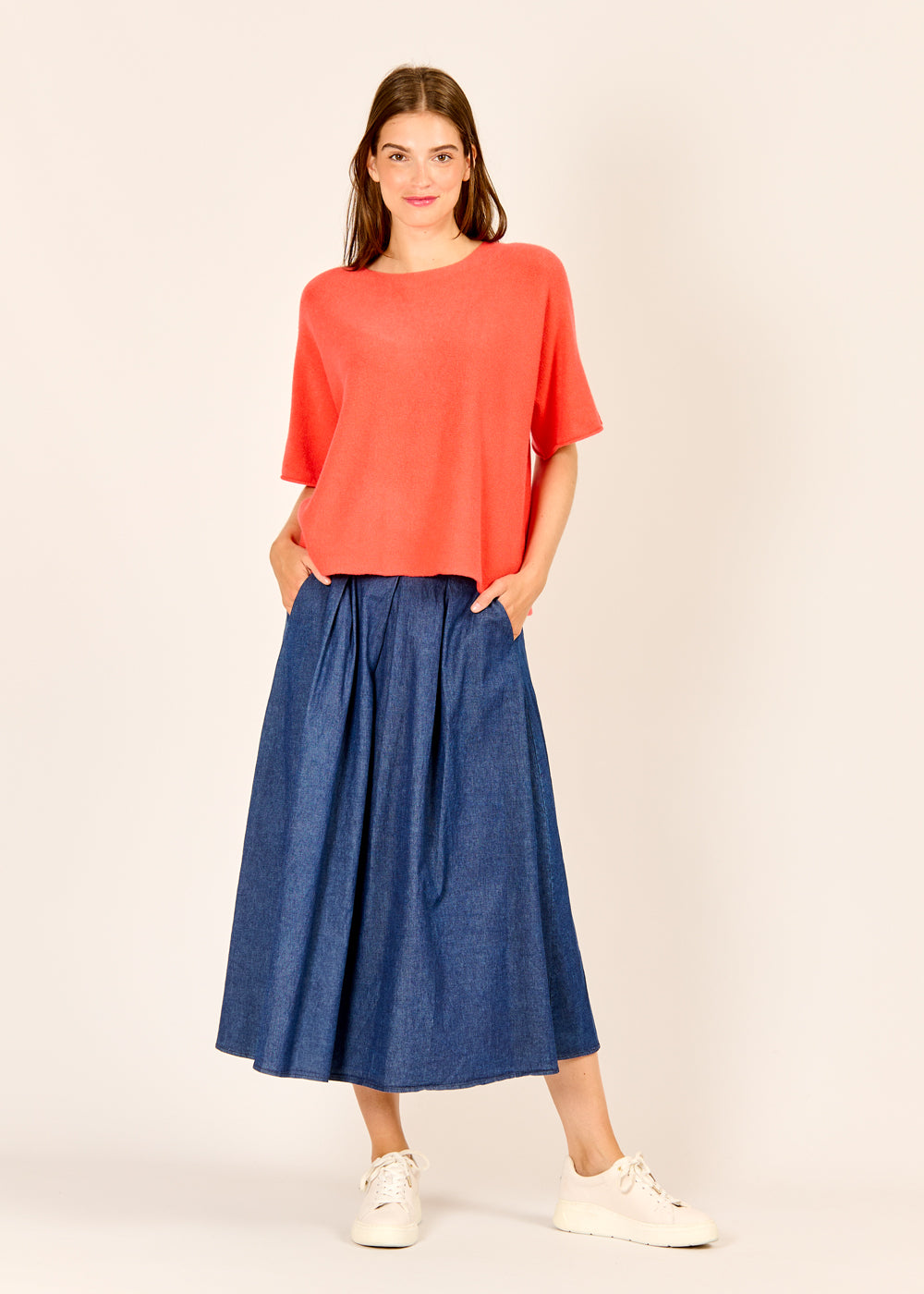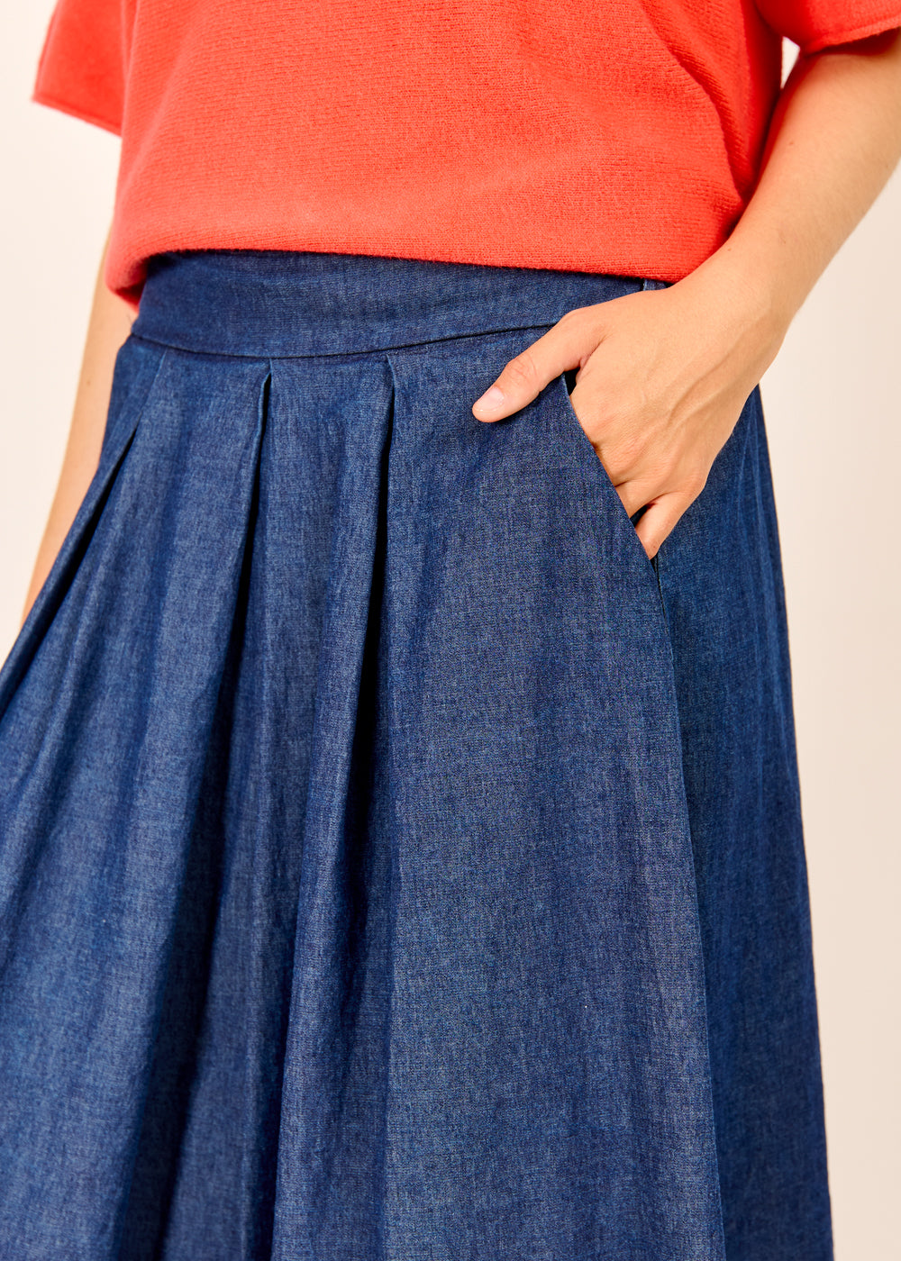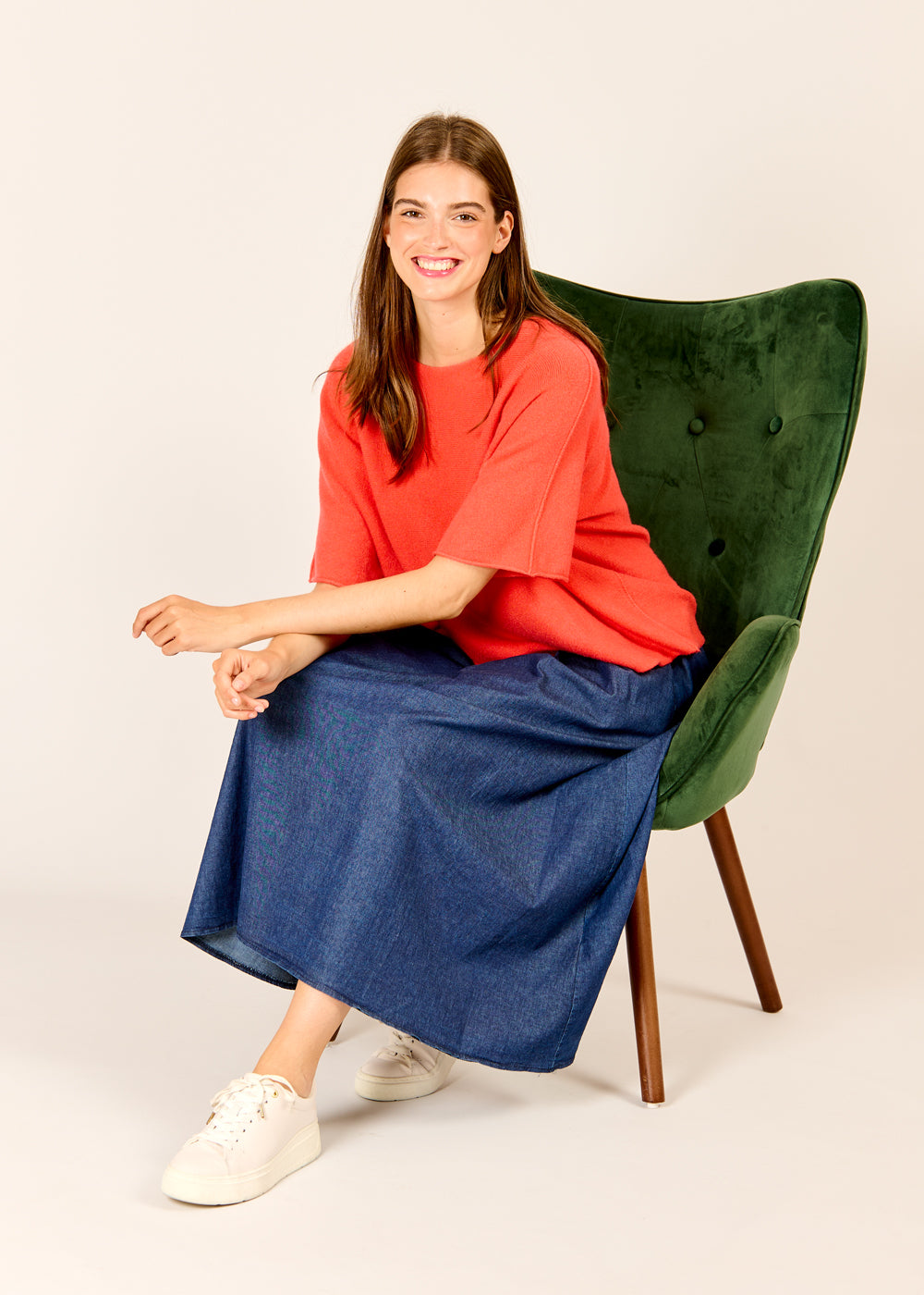 Dieser Jeansrock kombiniert zeitlosen Denim-Charme mit einer modernen, femininen Silhouette. Sein robuster Stoff verleiht ihm einen lässigen Look, der von City bis Strand perfekt funktioniert. Ein vielseitiges Lieblingsstück, das sich mühelos zu Sneakers, Sandalen oder Boots stylen lässt.