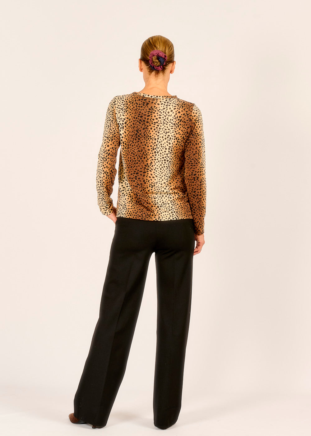 Dieses Animalshirt in der warmen Trendfarbe Caramello bringt wilde Eleganz und lässige Coolness in jeden Look. Das markante Animal-Print-Design trifft auf weichen Stoff, der sich angenehm an deine Haut schmiegt. Ob zu Jeans, Rock oder Lederjacke – dieses Shirt setzt ein modisches Statement, ohne auf Komfort zu verzichten. Perfekt für alle, die ihren Alltagsoutfits einen Hauch Abenteuer verleihen wollen.