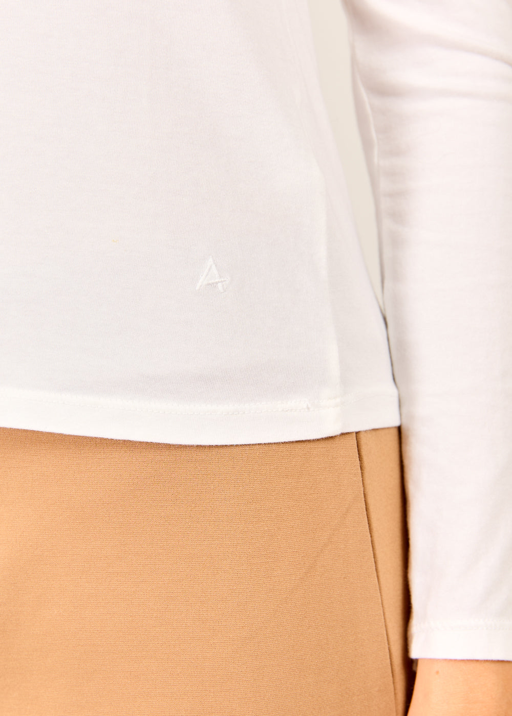 Ein unverzichtbares Basic, das in keiner Garderobe fehlen darf: Dieses schlichte Langarmshirt in zeitlosem Weiß überzeugt durch sein weiches Material und den figurbetonten Schnitt. Der elegante U-Boot-Ausschnitt setzt feminine Akzente, während der dezente Look unzählige Kombinationsmöglichkeiten eröffnet. Perfekt für einen lässigen Alltag oder als Grundlage für ein aufregendes Outfit.