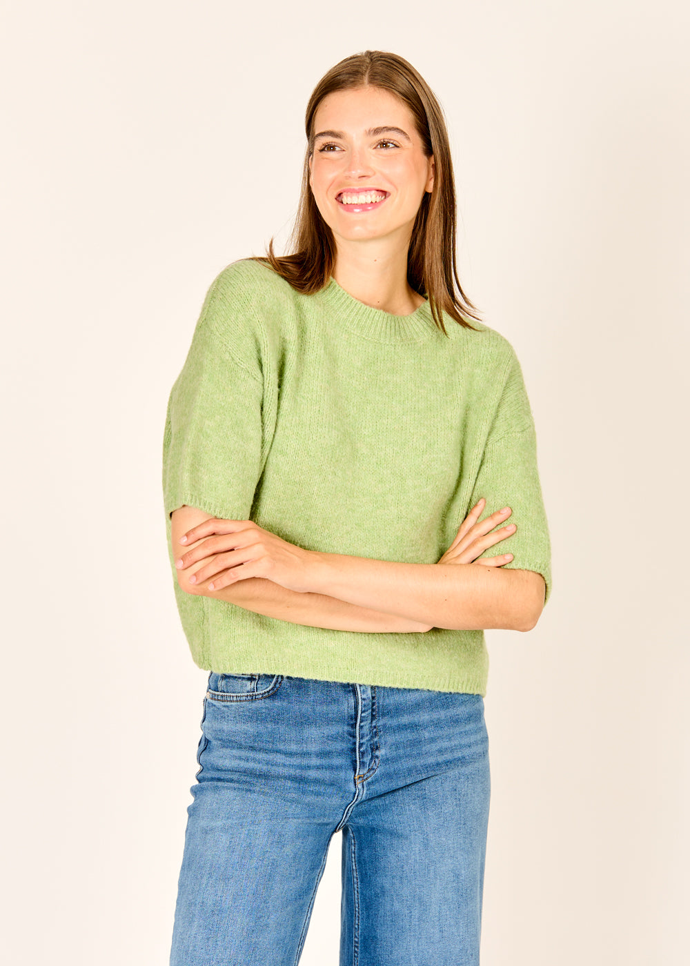 Dieser zarte Strickpullover in der trendigen Farbe Pistazie bringt frische Eleganz in jede Garderobe. Dank seines kuscheligen Materials und der lockeren Passform bietet er höchsten Tragekomfort und eine schmeichelhafte Silhouette. Ein stilvolles Highlight für sonnige Tage, das jedes Outfit zum Strahlen bringt.