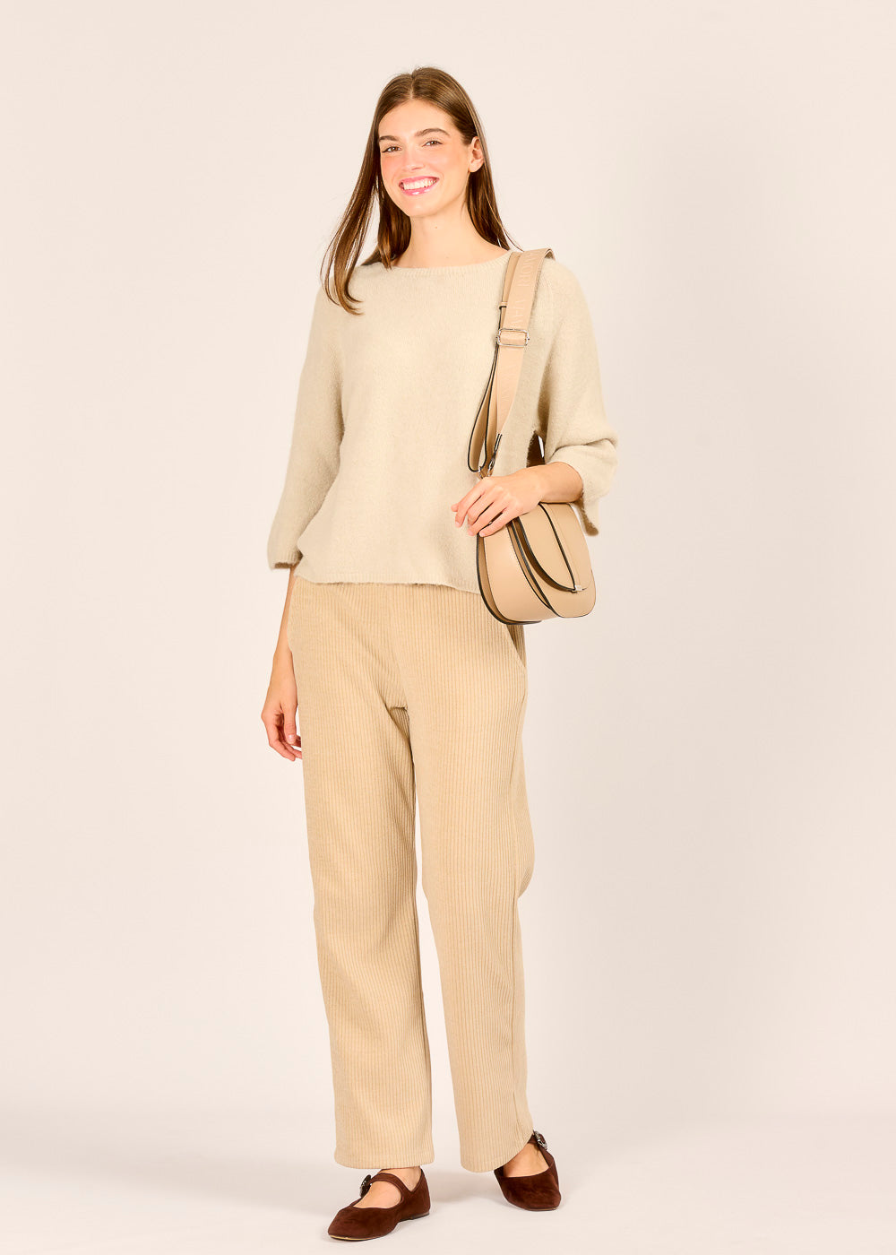 Unsere beige Cord-Pantalone vereint klassischen Charme mit modernem Komfort und verleiht jedem Outfit eine subtile, edle Note. Der weiche Cordstoff schmeichelt der Figur, während der zeitlose Schnitt vielseitige Stylingmöglichkeiten bietet – von casual bis chic. Ein Must-have für alle, die Eleganz und Gemütlichkeit mühelos kombinieren möchten.