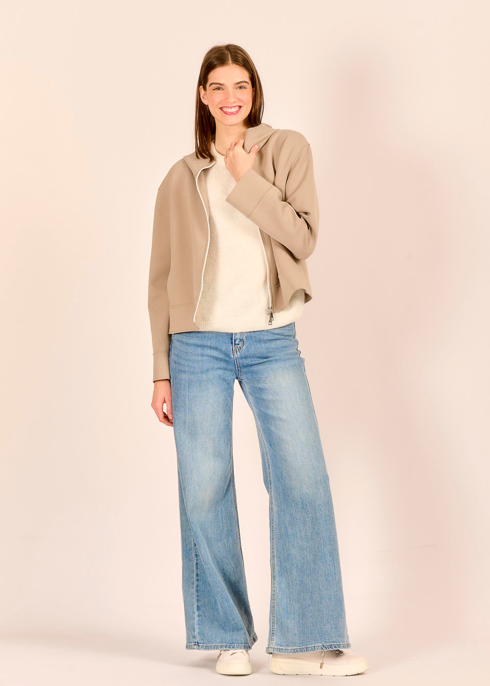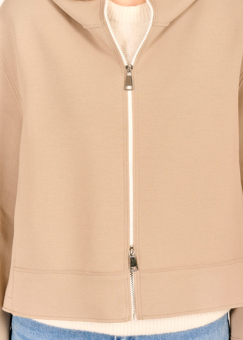 Diese edle Kapuzenjacke aus Baumwolle fühlt sich angenehm weich auf der Haut an. Das sanfte Taupe strahlt Ruhe und zeitlose Eleganz aus. Ob offen oder geschlossen getragen – der raffinierte Schnitt wirkt lässig und souverän zugleich.
