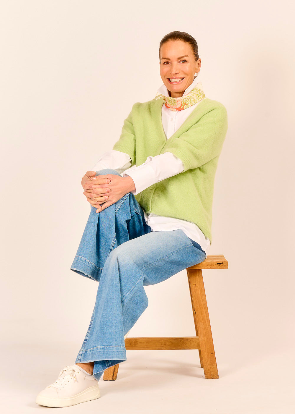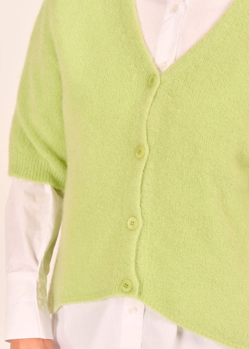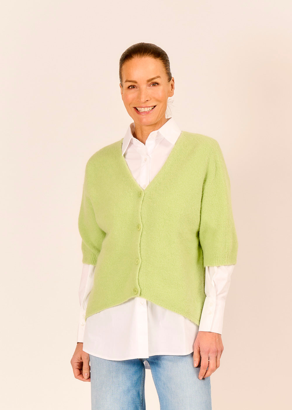 Der lässige Cardigan in der Trendfarbe Verde ist der perfekte Stylingpartner für stilvolle Layering-Outfits. Dank Babyalpaka-Anteil schenkt er dir an kühlen Tagen Wärme und sorgt für einen frischen Look.