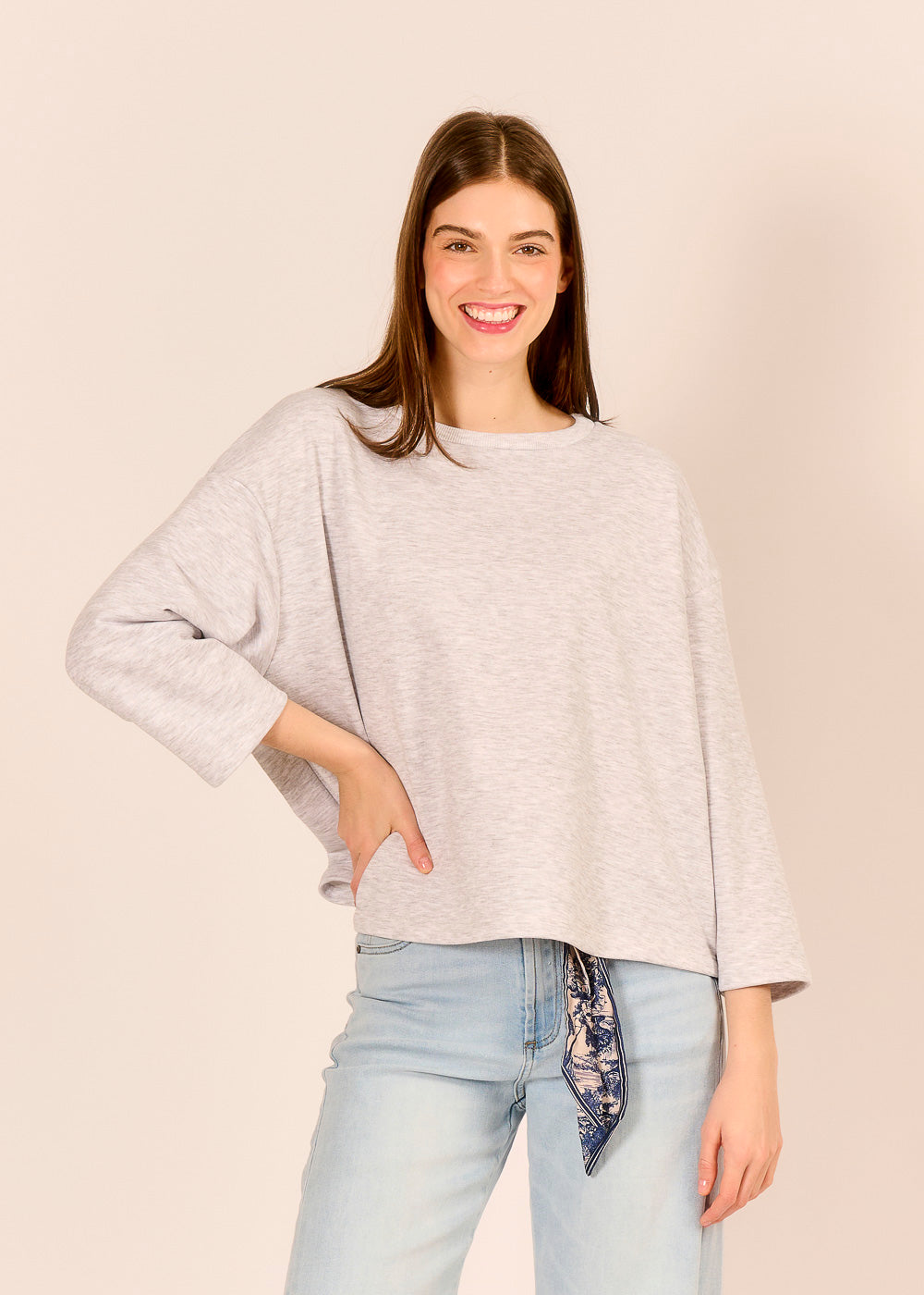 Der lässig geschnittene Sweaty mit 3/4-Arm ist der perfekte Freizeitlook. Helles Grau lässt sich mühelos kombinieren – ob entspannt, modern oder mit farblichen Akzenten.