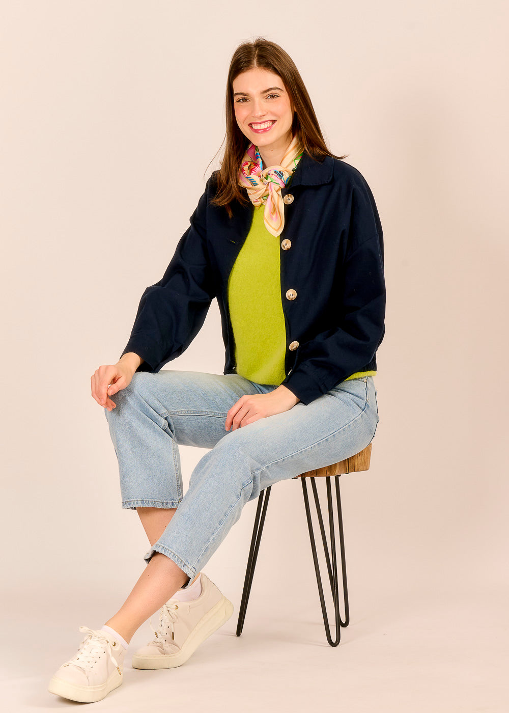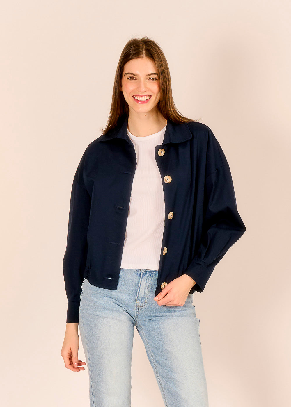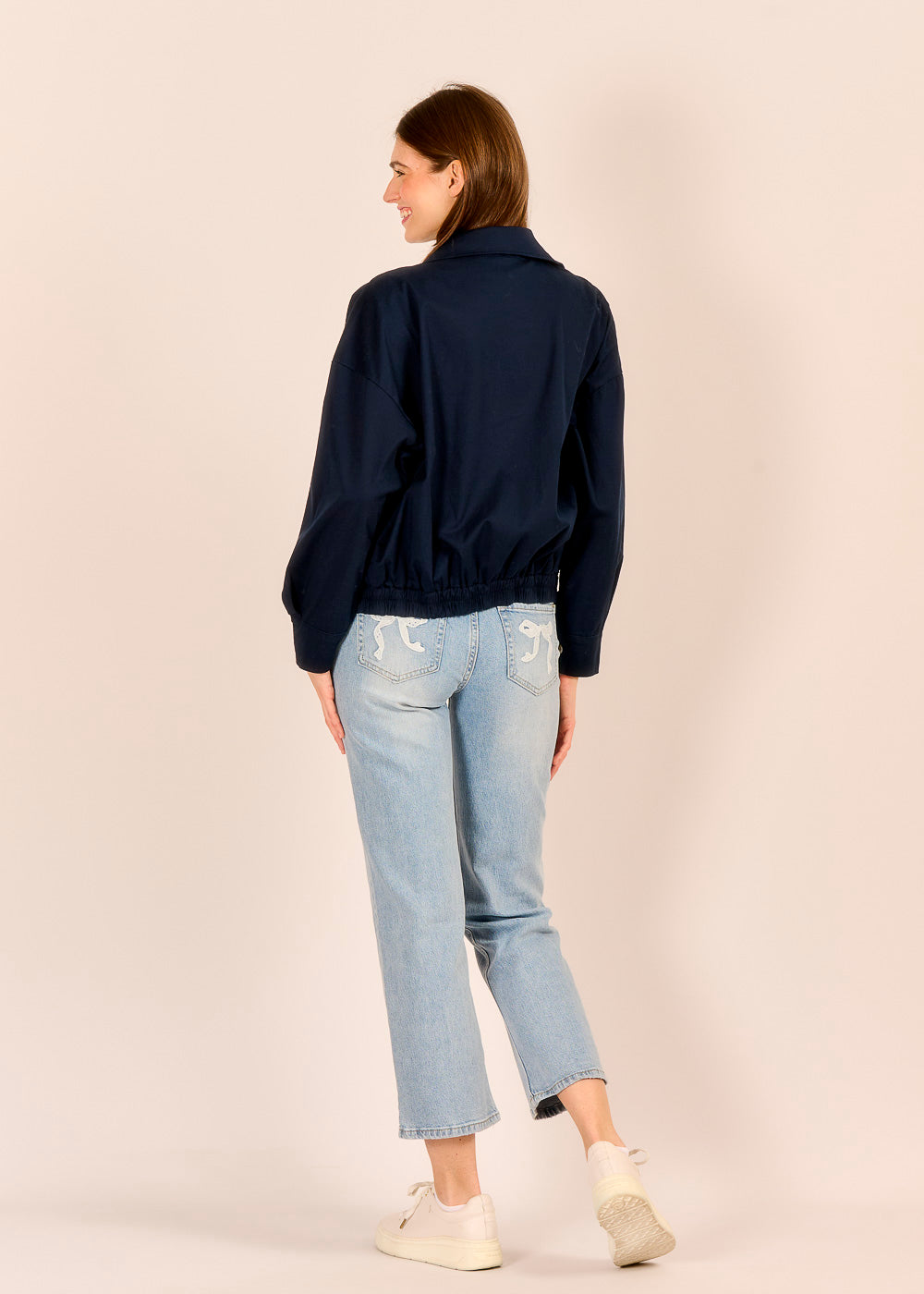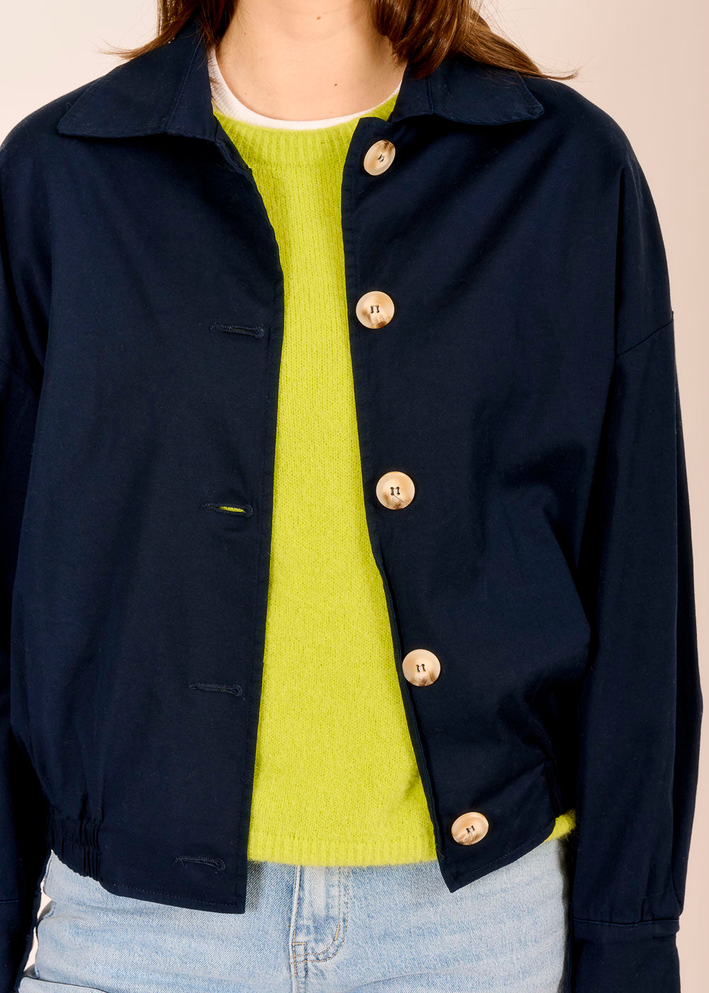 Der dunkelblaue Bomberino aus Baumwolle verbindet sportliche Lässigkeit mit stilvoller Eleganz. Das tiefe Blau wirkt edel und souverän. Der Gummizug und die hellen Knöpfe verleihen dem Design italienische Raffinesse.